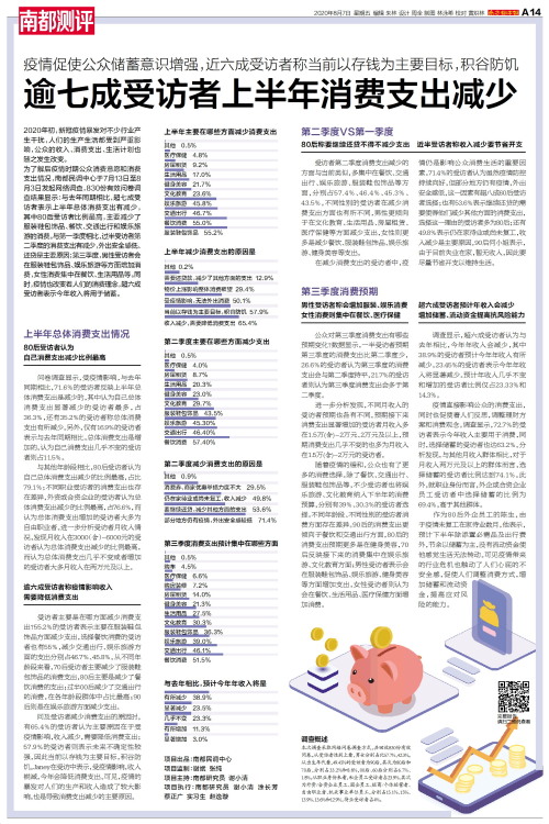2020年初,新冠疫情暴发对不少行业产生干扰,人们的生产生活都受到严重影响,公众的收入、消费支出、生活计划也随之发生改变。为了解后疫情时期公众消费意愿和消费支出情况,南都民调中心于7月13日至8月3日