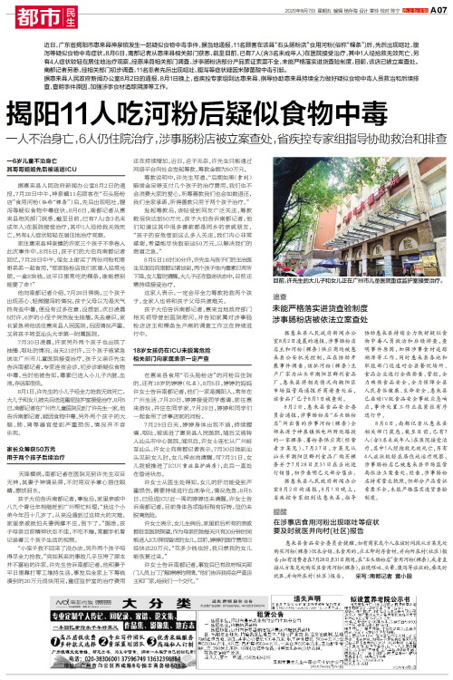 近日,广东省揭阳市惠来县神泉镇发生一起疑似食物中毒事件,据当地通报,11名顾客在该县“石头肠粉店”食用河粉(俗称“粿条”)后,先后出现呕吐、腹泻等疑似食物中毒症状。8月6日,南都记者从惠来县相关部门获