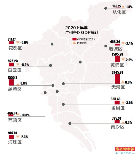 记者梳理发现,广州各区已经公布了上半年经济发展成绩单。数据显示,今年上半年,GDP总量位居前三的分别是天河区(2445.91亿元)、黄埔区(1595.29亿元)、越秀区(1555.3亿元)。