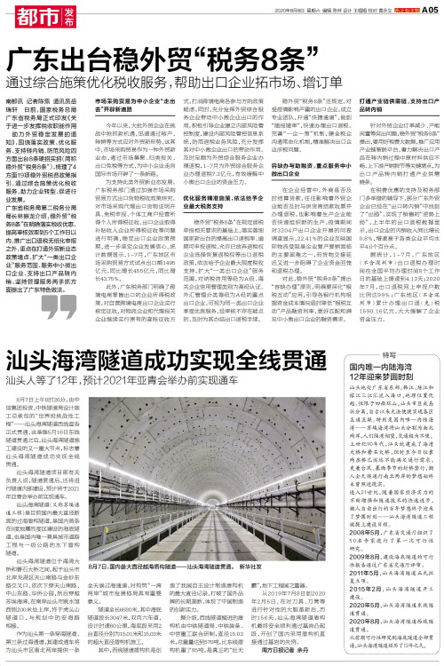 南都讯 记者陈燕 通讯员岳瑞轩 日前,国家税务总局广东省税务局正式印发《关于进一步发挥税收职能作用 助力外贸稳定发展的通知》,围绕落实政策、优化服务、支持转内销、防范风险四方面出台8条硬招实招(简称稳