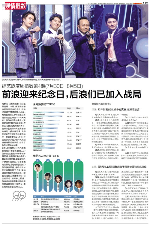 南都讯 记者黄晓雅 实习生蔡倩琦 本周,综艺圈的前浪们纷纷迎来纪念日,后浪们则迫不及待地加入战局。两档国民综艺IP将迎来具有纪念意义的节点——《天天向上》迎来12周年庆典,《奔跑吧》迎来第100期特辑