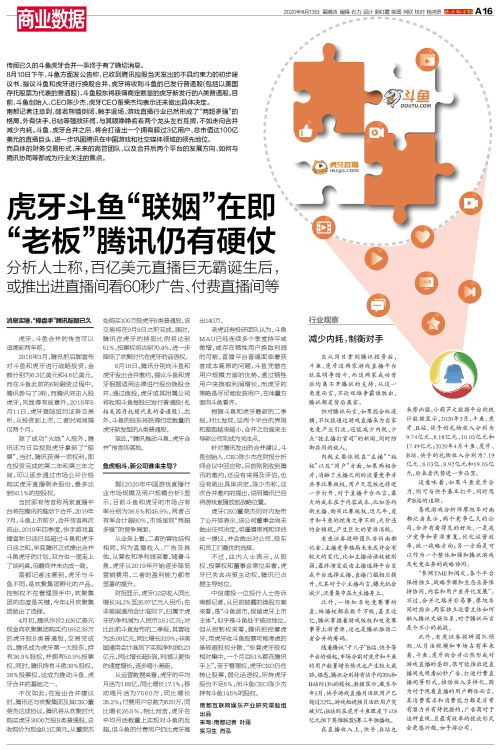 虎牙斗鱼“联姻”在即“老板”腾讯仍有硬仗