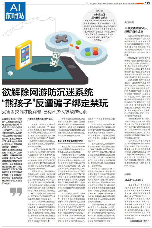 欲解除网游防沉迷系统“熊孩子”反遭骗子绑定禁玩