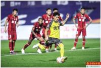 广州恒大淘宝队球员韦世豪(前)在比赛中主罚点球。保利尼奥在半场尾声“以一对多”贡献精彩破门,韦世豪替补登场独中两元。卫冕冠军广州恒大在昨日的中超联赛第五轮比赛中3:1战胜河南建业,重返A组榜首。恒大在