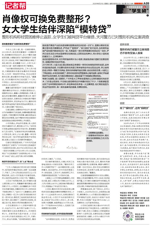 肖像权可换免费整形?女大学生结伴深陷“模特贷”