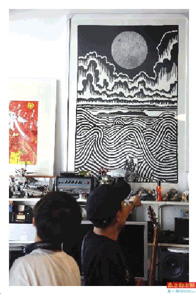 陈伟嘉是英式摇滚天团Radiohead铁粉,十多年前就是中国最早的Radiohead中文网站的站长,他不仅收集了偶像吉他手Jonny Greenwood的全套同款吉他和效果器,还把Radiohead御用画家Stanley Donwood的作品带回工作室,花了很大的精力在伦敦找到限量版画。其中的一幅《Lost at the Sea》购于伦敦Jealous画廊,是他个人收藏的最大的艺术品。