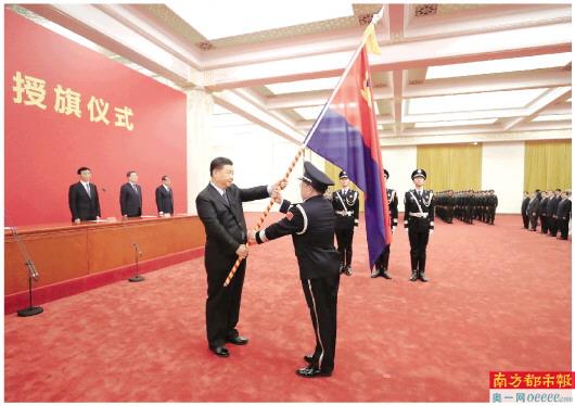 8月26日,中国人民警察警旗授旗仪式在人民大会堂举行,习近平向中国人民警察队伍授旗。 新华社发