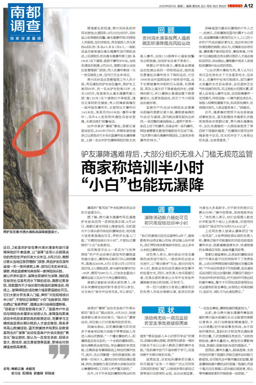 近日,2名重庆驴友在贵州滴水滩瀑布进行瀑降探险时不幸遇难,让“瀑降”这项小众极限运动的危险性开始引发大众关注。8月25日,南都记者从当地应急管理部门获悉,两名驴友在瀑布悬挂一天一夜后被救上岸,但均已无