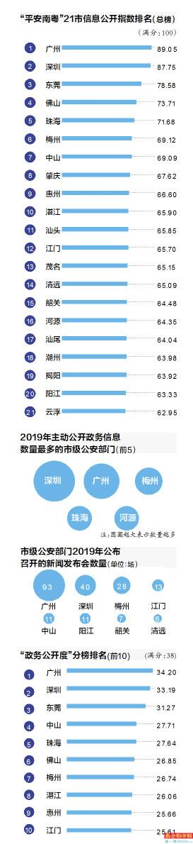南都大数据研究院通过分析550万条互联网信息,编制完成《“平安南粤”广东21市信息公开指数(2019—2020年)》,对各地市级公安部门的信息公开成效和政务新媒体运营情况作出观测。