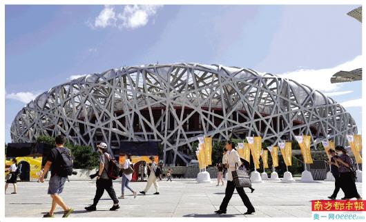 北京奥林匹克公园中轴景观大道室外展馆区的大型机器人模型(9月1日摄)。 新华社发