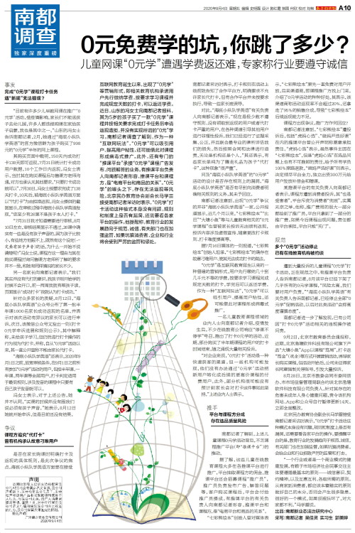 互联网教育诞生以来,出现了“0元学”等营销形式,即相关教育机构承诺用户先行缴纳学费,按要求学习课程并完成规定天数的打卡,可以返还学费。近日,山东的冯女士向南都记者报料,其为5岁的孩子买了一款“0元学”