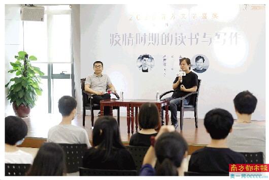分享会“疫情时期的读书与写作”,请来了书评人刘炜茗(左)、小说家王威廉(右)。南都记者 郑俊彬 摄