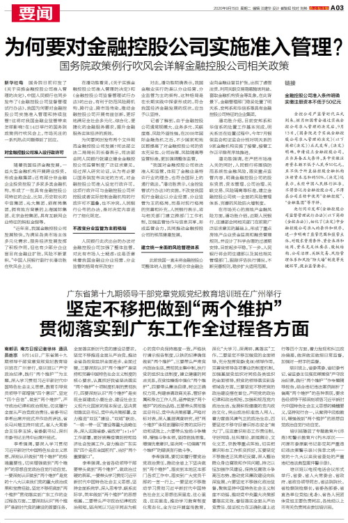 南都讯 南方日报记者徐林 通讯员岳宗 9月14日,广东省第十九期领导干部党章党规党纪教育培训班在广州举行。培训班以“严守政治纪律,践行‘两个维护’”为主题,深入学习贯彻习近平新时代中国特色社会主义思想