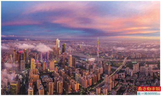 昨日傍晚,广州的天空铺满晚霞,宛如水彩画。 南都记者 陈冲 摄