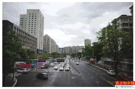 ↓昨日,深圳发布红色暴雨预警,下午四时许,原本水浸的上步路道路已经退水,天上依然乌云密布。南都记者 霍健斌 摄