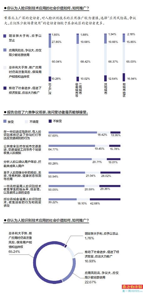居住城市成为影响受访者如何看待人脸识别的主要因素之一。相较于其他地区,居住在北上广深的受访者中认为“人脸识别应仅限于少数场景使用”的比例更高(27.85%),对人脸识别应用推广较为谨慎。
