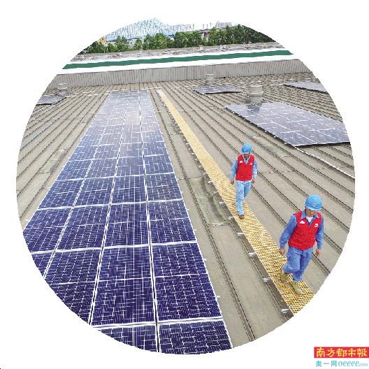 南方电网广东佛山南海桂城供电所工作人员检查光伏装置。 张宇晖 摄