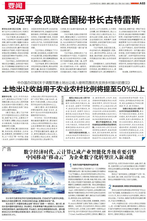 新华社北京9月23日电 国家主席习近平23日晚在北京以视频方式会见联合国秘书长古特雷斯。习近平强调,联合国成立75年来,为世界和平与发展作出重要贡献。国际社会要以隆重纪念联合国成立75周年为契机,重申