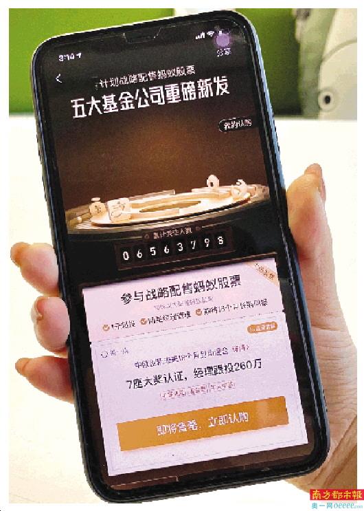 有业内人士认为,一方面蚂蚁集团这样的巨无霸IPO的吸金力强是本次支付宝代销取得优异成绩的保障;另一方面,购买方式便利,起投门槛低,都使得购买群体扩大,也成为新发基金“一日售罄”的法宝之一。南都记者询问多位参与“打新”的90后投资者,都表示是由于此次新发的5只基金有“1元起就能做蚂蚁股东”的吸引力,而且购买方便,故选择“买点试试”。