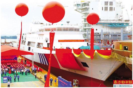 昨日,我国首艘万吨级海事巡逻船“海巡09”在广州出坞。列编后,它将是国内吨位最大、装备最优良的海巡船。“海巡09”由中国船舶集团701研究所设计,中船黄埔文冲船舶有限公司建造。 通讯员供图