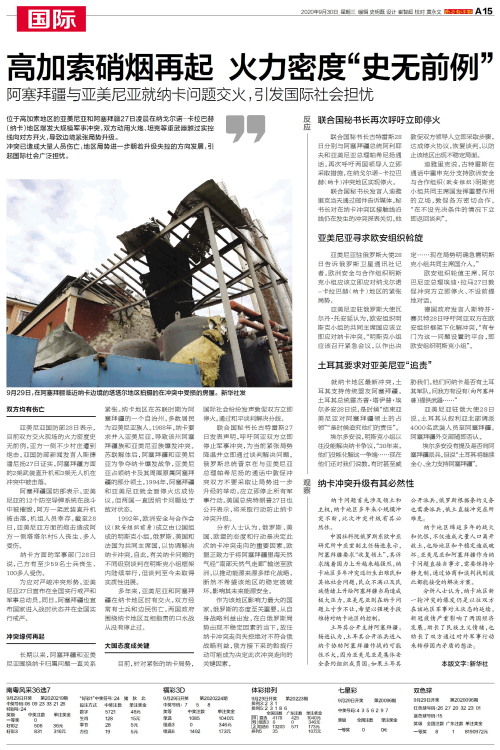 位于高加索地区的亚美尼亚和阿塞拜疆27日凌晨在纳戈尔诺-卡拉巴赫(纳卡)地区爆发大规模军事冲突,双方动用火炮、坦克等重武器越过实控线向对方开火,导致边境紧张局势升级。冲突已造成大量人员伤亡,地区局势进