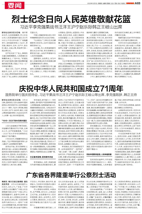 南都讯 南方日报记者傅鹏 通讯员史伟宗 9月30日是我国烈士纪念日,当天上午,广东省、广州市公祭烈士活动暨向广州起义纪念碑敬献花篮仪式在广州起义烈士陵园隆重举行。省委书记李希、省长马兴瑞、省人大常委会