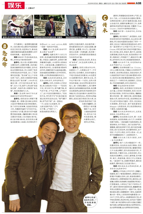 南都:这次合作下来,你觉得杨洋会成为中国的Tom Cruise吗?