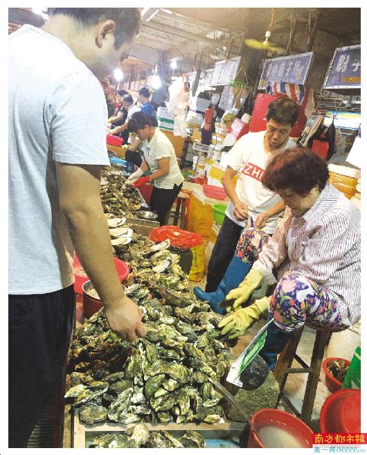 在湛江霞山水产品批发市场,巴掌大的生蚝6元一只。