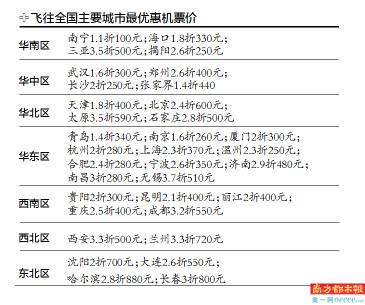 南都讯 记者钟丽婷 通讯员何佳娜 一转眼,黄金周假期已过半,节后广州出港机票价格迎来大跳水现象,最低低至1.1折。据白云机场售票处(400-830-0000)消息,未来一周(10月5日-11日)广州出港的机票价格低至1.1折,飞往南宁的只需要100元(不含税,下同)、飞往几大主要景点的地区价格也不超2折,如张家界1.4折440元、青岛1.4折340元、武汉1.6折300元、海口1.8折330元、南京1.6折260元、天津1.8折400元。其他城市的价格也不超4折,价格非常地优惠。航班票价更新较快,以实时查询为准。