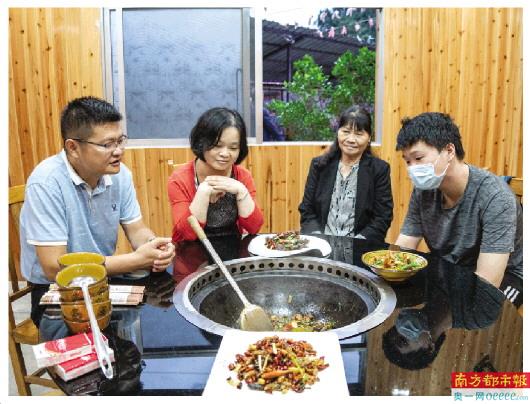 中秋月圆夜,围着柴火锅,钟伟一家吃了当地的特色美食。“钟医生刚来时吃不惯这里的食物,胃痛,现在没辣都吃不成饭!”江锡军笑称。