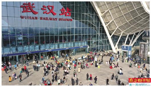10月8日,旅客在武汉火车站东广场准备进站乘车(无人机照片)。 新华社发