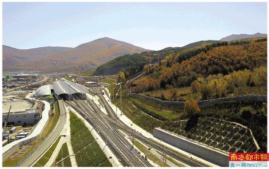 ←一列复兴号高铁列车穿过京张高铁居庸关隧道(10月6日摄)。