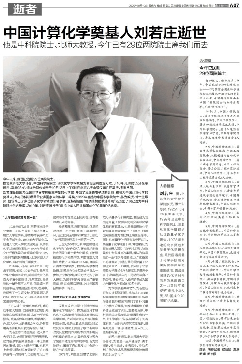 中国计算化学奠基人刘若庄逝世