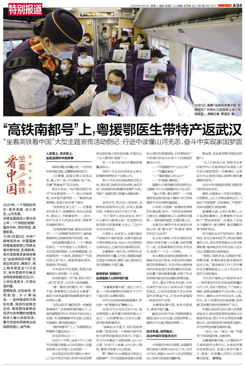 “高铁南都号”上,粤援鄂医生带特产返武汉
