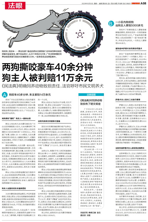 狗咬狗、狗咬车……责任在谁?造成的损失归谁赔偿?近年来饲养动物致损案件屡屡发生,据不完全统计,从2011年到2020年,广东法院审理的饲养动物致损害引发的纠纷案就有533件。一起来看看这些典型案件。
