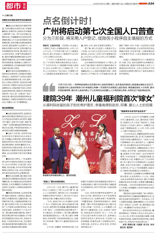 10月10日10时,一场特殊的送亲仪式在潮州市儿童福利院举行。这天是福利院孤儿李露南出嫁的大喜日子,也是潮州市儿童福利院自1981年建院以来第一次在院内为该院孤儿操办婚事。李露南的婚礼十分热闹,潮州市