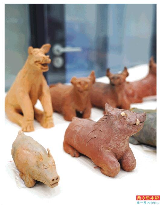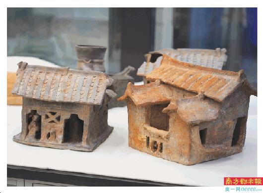 两汉时期的遗迹也十分丰富,包括墓葬36座、灰坑10处、水井3处。其中3座东汉时期砖室墓规模较大、结构讲究。M26平面略呈“中”字形,墓室底部排水沟穿过后室向墓后延伸,这种结构在广州两汉墓葬中还是首例。该墓虽被严重盗扰,但在前室仍然出土了50余件器物,其中的狗、牛、猪、鸡、鸭等家畜家禽模型,制作精美,形态栩栩如生,是近年考古发掘不可多得的汉代陶质文物精品。