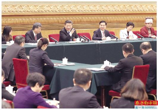 2018年3月7日,中共中央总书记、国家主席、中央军委主席习近平参加十三届全国人大一次会议广东代表团的审议。
