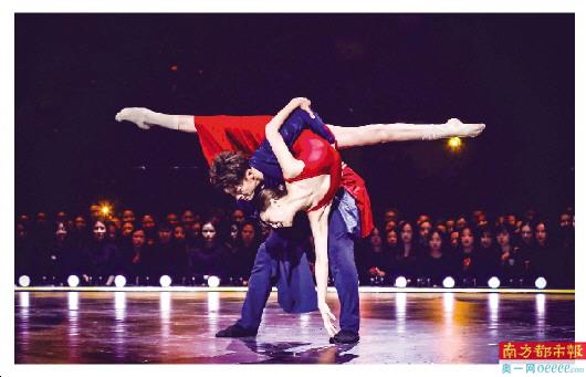 首组登场的是古堃玄和孙晨红,女舞者穿红衣,男舞者一袭黑衣,远远看上去就像一位勇士挥动着红布在斗牛场战斗,女舞者被不断托举、旋转就像红布一样上下翻飞,高难度的动作惊得小吉的下巴都快掉了。