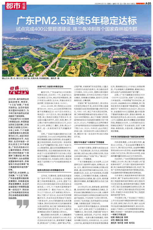 2020年,是污染防治攻坚战收官年、考核年,“十三五”时期,广东在污染防治、生态环境改善方面所作的努力,为今年打赢污染防治攻坚战提供了坚实保障。广东全省PM2.5已连续5年稳定达标,年底有望达到世卫组