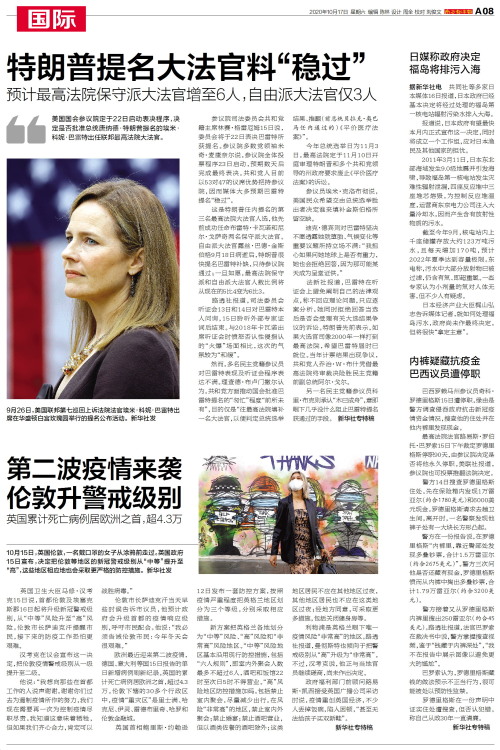 美国国会参议院定于22日启动表决程序,决定是否批准总统唐纳德·特朗普提名的埃米·科妮·巴雷特出任联邦最高法院大法官。参议院司法委员会共和党籍主席林赛·格雷厄姆15日说,委员会将于22日表决巴雷特所获提