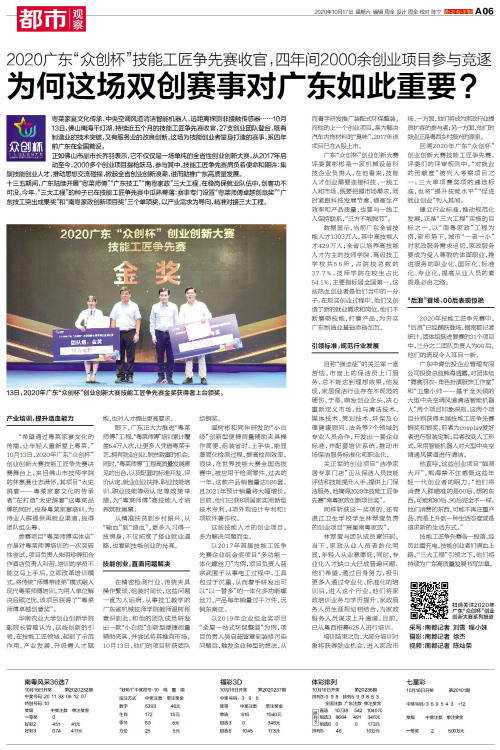 粤菜家宴文化传承、中央空调风道清洁智能机器人、远距离探测非接触传感器……10月13日,佛山南海千灯湖,持续近五个月的技能工匠争先赛收官,27支创业团队登台,既有制造业的技术突破,又有服务业的改良创新。