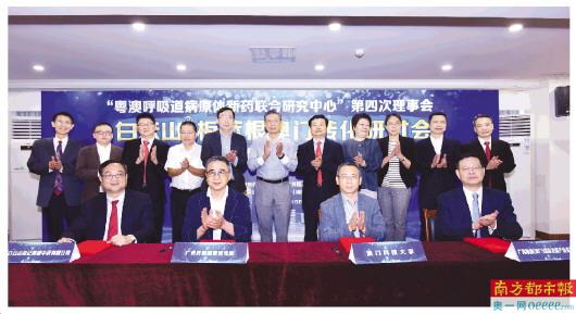 10月13日,“粤澳呼吸道病原体新药联合研究中心”第四次理事会白云山板蓝根澳门转化研讨会暨合作签约仪式在广州举行。广药集团旗下广州白云山和记黄埔中药有限公司、广药集团(澳门)国际发展产业有限公司与广州呼吸健康研究院和澳门科技大学正式签订“白云山板蓝根研究成果澳门转化备忘录”,成为广药集团澳门国际总部成立后首个落地项目。该项目将由中国工程院院士钟南山担任首席科学家领导团队开展白云山板蓝根研究成果的快速、高效转化。