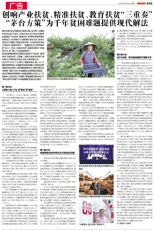 创响产业扶贫、精准扶贫、教育扶贫“三重奏”“茅台方策”为千年贫困难题提供现代解法