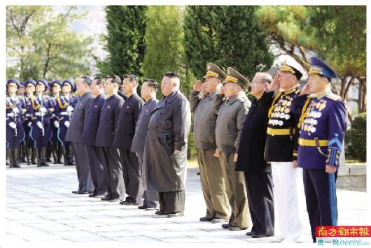 10月21日,朝鲜劳动党委员长、国务委员会委员长金正恩前往桧仓中国人民志愿军烈士陵园敬献花篮。新华社发