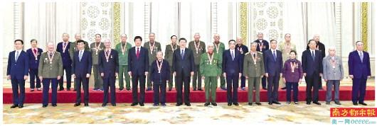 会前,习近平等领导同志会见了“中国人民志愿军抗美援朝出国作战70周年”纪念章获得者代表,并同大家合影留念。