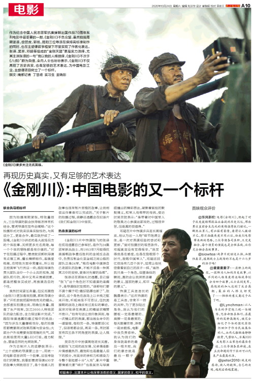 @Lynchman:以人为本的步空炮三视一体铺陈,冗余却胜在取巧。在最终的筑桥高潮处,被完全细化于个体的国仇家恨仍回归于作为民族集体的人,血肉之躯锻造铮铮铁骨,气势惊人,当属2020反电影工业常态的最佳奇迹。三位导演各显神通,在主流命题创作下依旧可以代表产业最高水准。