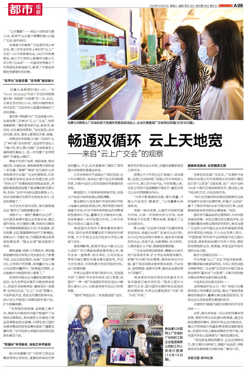 “云开雾散”——用这个词形容为期10天、即将于24日落下帷幕的第128届广交会,格外贴切。这是继今年春季广交会首次网上举办后,第二次完全在网上举办的“云上广交会”:2.6万家参展企业、240万件参展商