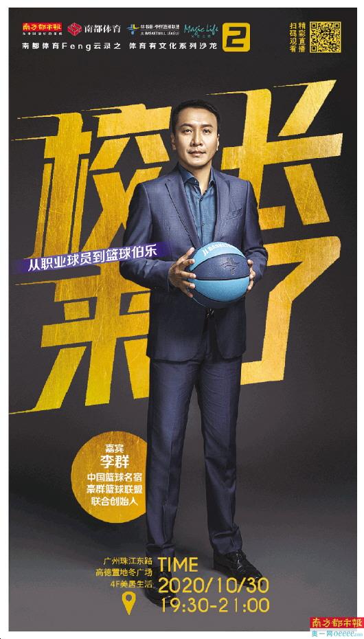 9月30日本周五晚19:30-21:00,南都体育“Feng云录”之“体育有文化”系列沙龙第2期,特邀中国篮球名宿、豪群篮球联盟联合创始人李群畅聊中国篮球往事,讲述与圈内外朋友们的结缘故事,分享他多年坚守教育一线的经验和理念。