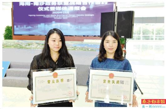 活动仪式上,海南省人民政府政务服务中心、广州市南沙区政务服务数据管理局双方代表现场签订海南省人民政府政务服务中心-广州市南沙区政务服务数据管理局政务联盟战略合作框架协议,为安博(海口)投资有限公司、广州田达航空服务有限公司颁发首张政务联盟营业执照。